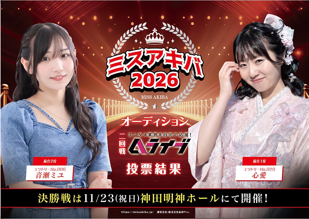 2025年11月23日(日)、神田明神ホールにて「ミスアキバ2026決勝戦」が開催!本ページでは「ミスアキバ2026」グランプリが決まるまでを、事前予選から順に振り返ってまいりたいと思います。